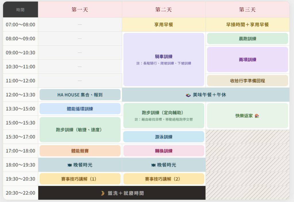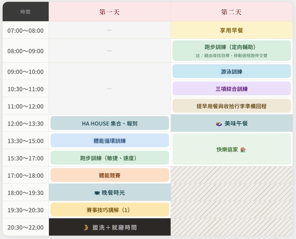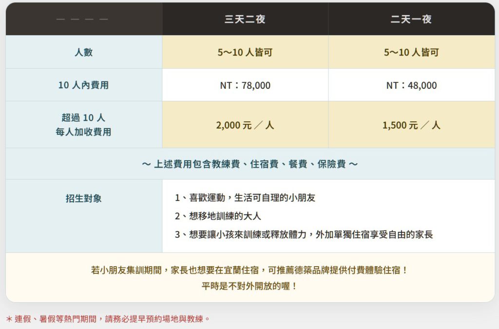 無論是時間或是課程內容,皆可雙方討論並客製化處理,達到最有趣的訓練假期。